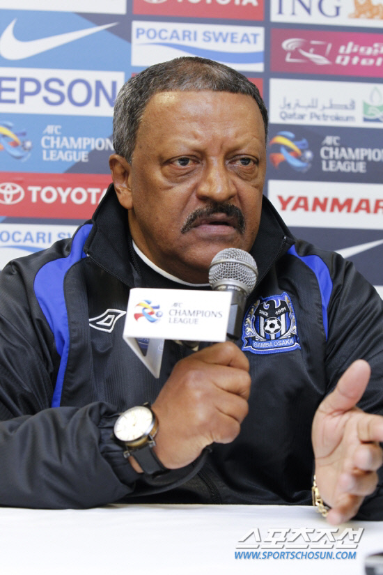 ◇포항과 아시아챔피언스리그에서 한 조에 속한 감바 오사카의 조제 사랑 감독 경질설이 흘러나오고 있다. 지난 5일 포항과의 아시아챔피언스리그 조별리그 1차전을 앞두고 기자회견에 나선 세랑 감독. 오사카(일본)=사진공동취재단
