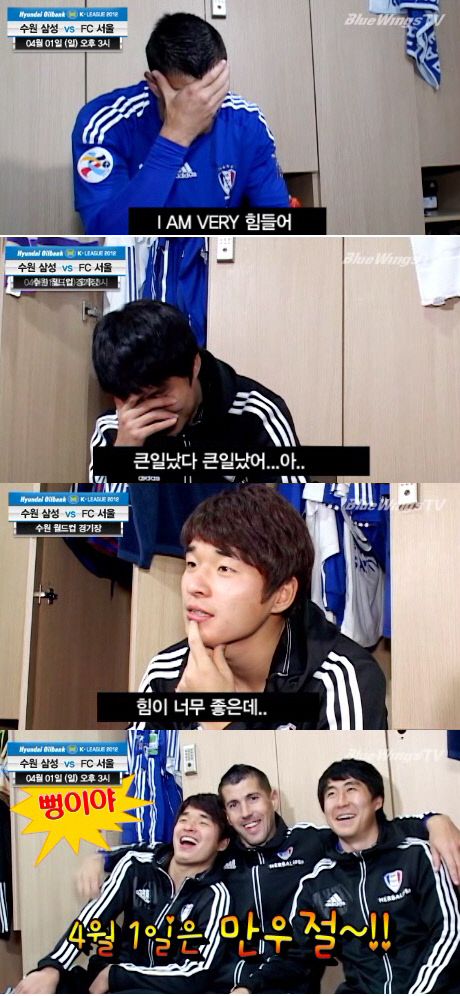 ◇슈퍼매치를 앞둔 수원이 서울에 2차 도발을 감행했다. 30일 인터넷을 통해 '북벌 2012 기획영상 만우절매치편'을 내보냈다. 사진캡처=수원 구단 프로모션 동영상