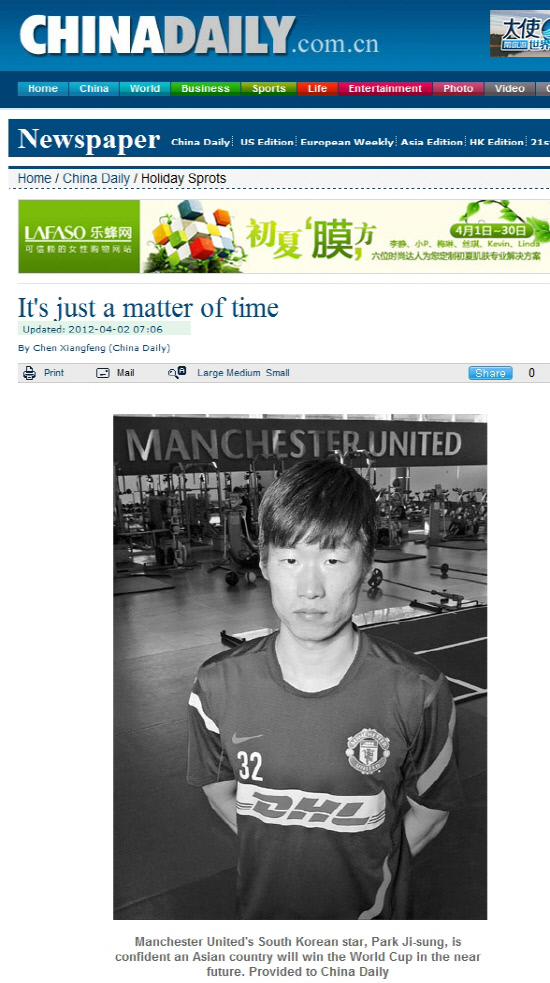 이 매체는 박지성이 지난해 이장수 감독이 지휘봉을 잡고 있는 중국 광저우 에버그란데의 러브콜을 받은 루머에 대해서도 언급했다.