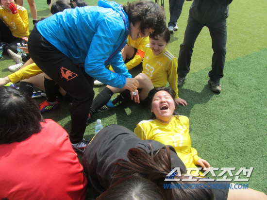 이날 '가락고 메시' 주장 배선영양(17)은 '미친 존재감'을 뽐냈다. 연예인축구단 FC리베로전에서 해트트릭, 개막전인 건국대사대부고전에서 2골을 터뜨리며 펄펄 날았다. "중학교 때 남자애들이랑 교회에서 축구를 했었다. 요즘은 1주일에 3번 훈련한다. 체력도 좋아지고 집중력도 좋아져서 성적이 많이 올랐다. 축구를 하면서 친구도 많이 사귀었다"며 웃었다. 물론 잘하는 아이들만 있는 건 아니다. 좋