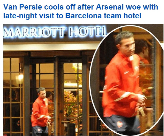 판 페르시는 호텔에서 네덜란드 대표팀 동료 이브라힘 아펠라이와 지난시즌까지 아스널에서 한솥밥을 먹었던 세스크 파브레가스와 대화를 나누고 온 것으로 알려졌다. 사실 여부와 관계없이 아스널 팬들을 두렵게 만든 사진임에는 틀림없다.