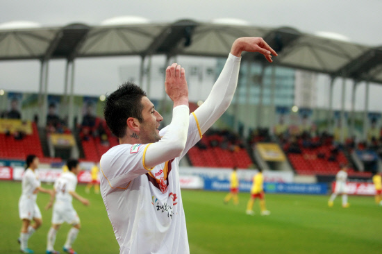 독특한 골 세리머니도 눈길을 사로잡았다. 선취골을 넣고 복이는 곧바로 중계 카메라 앞으로 달려갔다. 그러더니 농구선수들의 슈팅 자세를 취했다. 추억이 깃든 세리머니였다. 2000년 세르비아 FK 믈라도스트 포드고리카 유니폼을 입고 프로 데뷔골을 터뜨렸을 때 선보였던 세리머니였다. 12년 만에 재현한 세리머니는 감동, 그 자체였다. 두 번째 골 세리머니는 주앙파울로에게 영감을 얻었다. 주앙파울로는 15일 전남전에서 팀을 패배에서 구해내는 동점골을 터뜨린 뒤 관중석으로 뛰어들어 광주 서포터스와 기쁨을 나눴다. 복이도 골이 터지자 A보드 광고판을 뛰어넘어 서포터스들과 환희를 즐겼다.