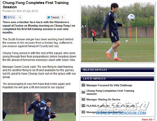 그는 24일(이하 한국시각) 1군 훈련에 합류, 첫 훈련을 소화했다. 오언 코일 볼턴 감독은 "훈련을 시작한 것은 경기에 나갈 수 있는 것과는 또 다르다"며 신중했다. 기쁨은 감추지 않았다. "이청용이 팀 훈련에 합류한 것은 굉장한 일이다. 미소를 다시 보게 돼 반갑다. 우리 팀의 상승과 향상에 도움을 주기를 바란다."