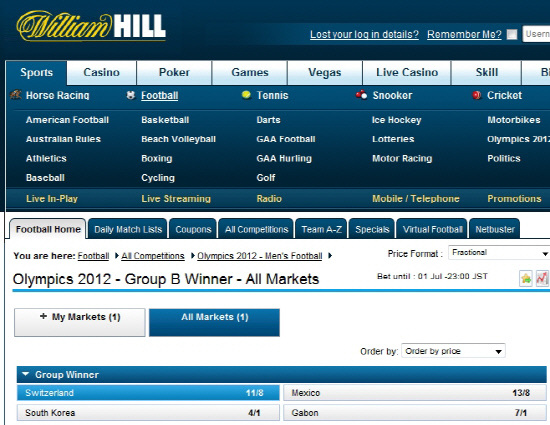 윌리엄 힐은 24일(이하 한국시각) 영국 웸블리에서 열린 런던올림픽 조추첨식이 끝난 뒤 4개조의 우승팀을 전망했다.
