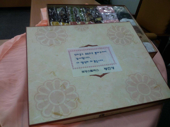 다들 웃음 지었다. 정규리그 전체 MVP로 선정된 선수가 떡을 돌린적은 있었다. 하지만 라운드 MVP가 감사의 떡을 돌린 것은 처음이었다.