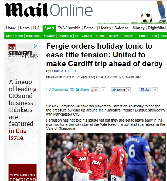 퍼거슨의 선택에 대한 이유는 한 가지다. 리그 우승에 극심한 부담감을 느끼는 선수들의 스트레스 해소를 위해서다. 그럴만도 했다. 올시즌 맨유는 국내에서 FA컵, 리그 컵대회에서 모두 탈락했다. 게다가 유럽챔피언스리그에서도 조별리그 탈락의 고배를 마셨다. '꿩 대신 닭'으로 출전한 유로파리그 8강 진출도 실패했다. 남은 것은 오직 리그 우승 뿐이다. 그러나 시간이 지날수록 부담감만 늘었다. 맨유는 최근 3경기에서 1승1무1패를 기록했다. 지난 12일 위건 원정에서 0대1로 졌다. 16일 애스턴빌라를 4대0으로 꺾고 분위기를 반전시켰지만, 22일 에버턴에 3-1로 앞서다 4대4로 비겼다. 무엇보다 분위기를 최고조로 끌어올리지 못한 상황에서 지역 라이벌 맨시티를 상대하게 된다.
