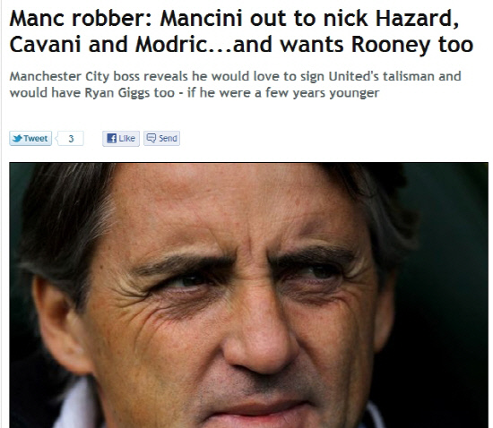 28일(한국시각) 영국 일간지 데일리미러는 로베르토 만시니 감독이 올 여름이적시장에서 엄청난 지원을 약속받았다고 보도했다. 그는 "맨유, 리버풀, 아스널은 지난 10년간 맨시티 보다 많은 돈을 써왔다"며 이적에 천문학적인 돈을 쏟아붓는 것에 대한 당위성을 설명했다. 만시니 감독은 영입하고 싶은 맨유 선수 중 "단연 루니다. 그는 챔피언이다"고 했다. 루니는 2년전 이적 요청서를 제출하며 맨시티 이적이 유력시 됐지만, 팬들과 알렉스 퍼거슨 감독의 만류로 맨유에 잔류한 기억이 있다. 루니와 맨유의 계약은 2015년 6월까지다.