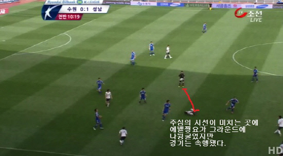 28일 수원월드컵경기장에서 열린 K-리그 10라운드 수원-성남전, 전반 11분 성남의 공격수 에벨찡요가 그라운드에 나뒹굴었다. 수원의 스테보가 패스 직후 달려와 발을 꾹 밟았다. 누가 봐도 공은 이미 발을 떠난 후였다. 눈앞의 야속한 휘슬은 울리지 않았다. 부상한 선수를 묵과했다. 이후 수원이 공격권을 잡았고 10초 가까이 경기는 속행됐다. 에벨찡요가 손을 들어올리며 고통을 호소했지만 주심도 선심도 선수의 고통에 주목하지 않았다. 결국 에벨찡요는 들것에 실려나왔다. 심각한 발목인대 부상으로 반깁스를 한 채 트레이너 등에 업혀서 소속팀으로 돌아갔다. 이날 전반 2분 시즌 첫골을 터뜨린 에벨찡요의 교체 이후 성남은 흔들렸다. 후반 2골을 허용하며 수원에 역전패했다. 이날 역전골의 주인공은 스테보였다.