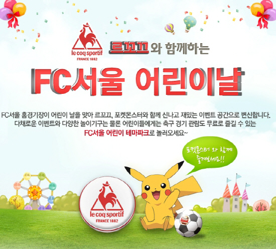 FC서울은 어린이 날인 5일 서울월드컵경기장에서 열리는 포항과의 K-리그 11라운드를 '르꼬끄 데이(Le Coq Sportif Day)'로 지정했다.