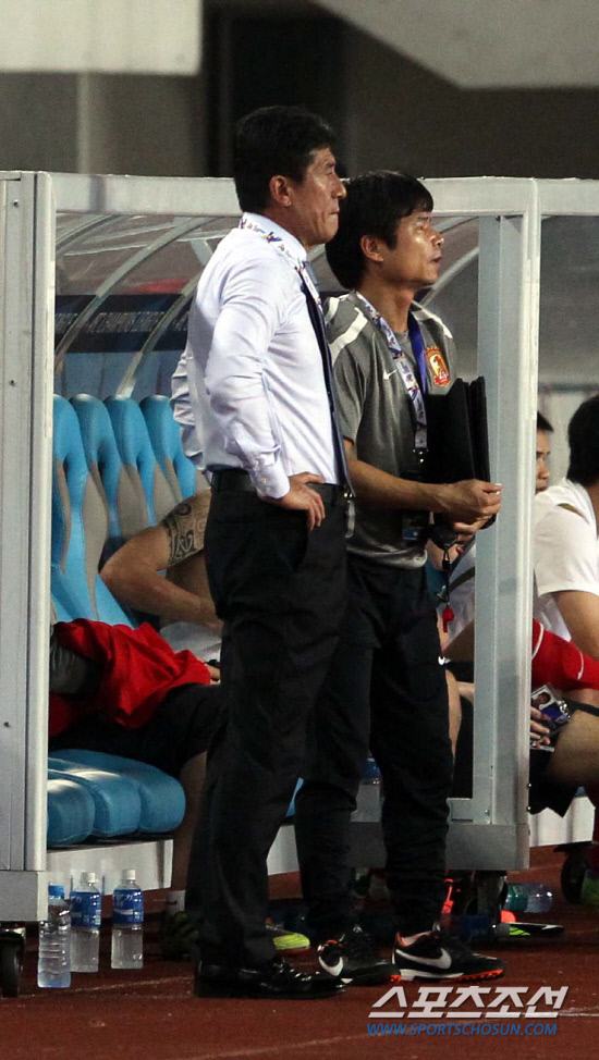 | 광저우 이장수 감독이 답답한 표정으로 경기를 지켜보고 있다. 광저우(중국)=공동취재단 |