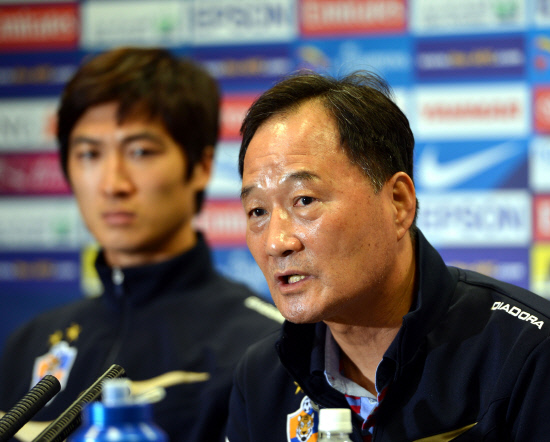 | 김호곤 울산 감독이 16일 브리즈번과의 아시아챔피언스리그 4차전을 앞두고 기자회견을 하고 있다. 사진제공=울산 현대 |