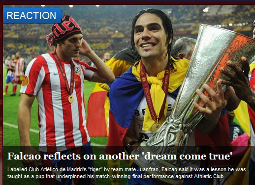 팔카오는 포르투와 아틀레티코 마드리드에서 연속으로 유로파리그 우승 트로피를 들어올리며, 유럽을 대표하는 골잡이로 떠올랐다. 2년 연속 유로파리그 득점왕을 차지했다. 팔카오는 지난 여름 아틀레티코 마드리드로 이적하기 전 첼시의 구애를 받았다. 지금은 경질된 안드레 비야스-보아스 감독은 첼시서 팔카오와 재회하길 원했다. 스페인 무대를 택한 팔카오는 팀을 떠난 세르히오 아구에로(맨시티), 디에고 포를란(인터밀란)을 대신해 35골을 넣으며 아틀레티코 마드리드의 확실한 에이스로 떠올랐다.