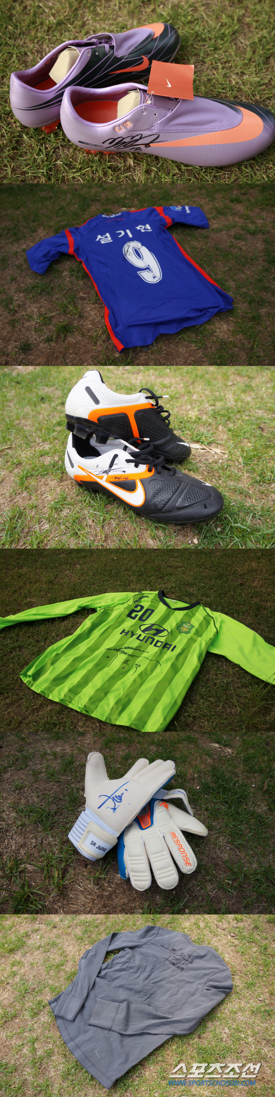 이동국의 아시아챔피언스리그 결승전 실착 유니폼, 국가대표 거미손 정성룡의 골키퍼 장갑, 시크남 윤빛가람과 꽃미남 임상협의 축구화….