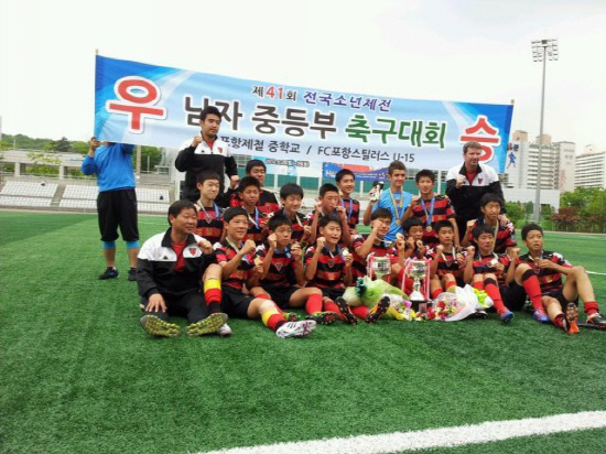 경북 대표로 제 41회 전국소년체전 축구 종목 남중부에 출전한 포철중은 29일 오전 고양어울림누리 경기장에서 열린 순천 매산중과의 결승전에서 2대0 승리를 거두며 대회 금메달을 차지했다. 포철중은 1회전에서 인천 부평중에 4대0 승, 2회전에서 울산 남창중에 2대0 승, 준결승에서 전북 완주중을 상대로 3대0 승리를 거두며 결승에 진출했다. 결승전에서는 전반 15분 노영욱, 후반 10분에 우찬양이 각각 득점포를 쏘아 올렸다.