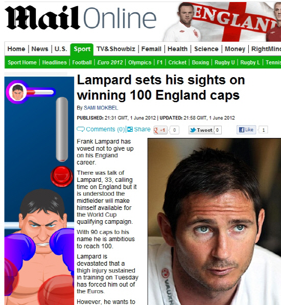 첼시의 미드필더 프랭크 램파드(34)가 유로2012 불참에도 센추리클럽 가입을 꿈꾸고 있다.