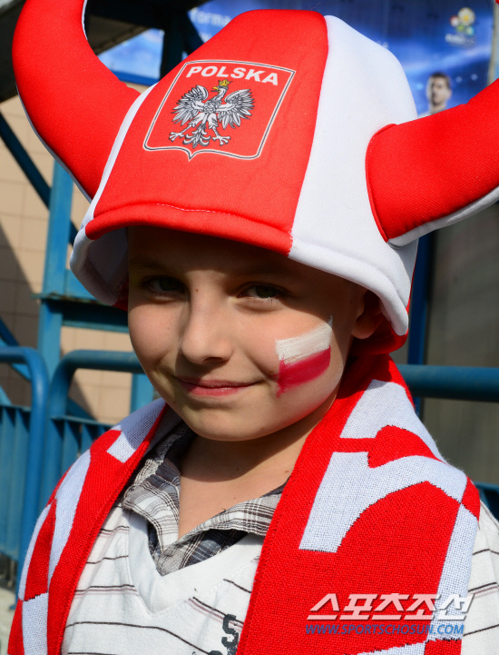 유로 2012 개막을 하루 앞둔 8일(한국시각) 폴란드 바르샤바는 축구 열기가 정점을 향해 달아오르고 있다. 바르샤바 문화과학궁전 앞 광장에서 열린 전야제에 온 소년이 응원모자를 쓰고 미소를 짓고 있다.