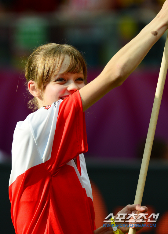 9일(한국시각) 폴란드 바르샤바 국립경기장에서 유로 2012 개막전 폴란드와 그리스의 경기가 열렸다. 경기전 개막행사에서 독특한 의상을 입은 여성들이 그라운드를 수놓고 있다. 경기전 열린 개막행사에서 폴란드 소녀가 깃발을 흔들고 있다.