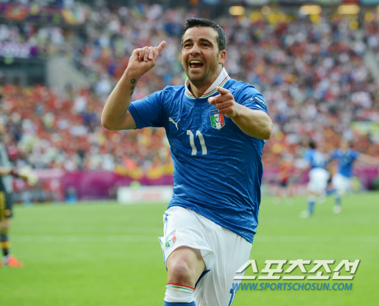11일(한국시각) 오전 1시 폴란드 그단스크 아레나에서 열리는 유로 2012 스페인과 이탈리아의 경기가 열렸다. 이탈리아의 안토니오 디 나탈레가 선제골을 넣고 환호하고 있다.