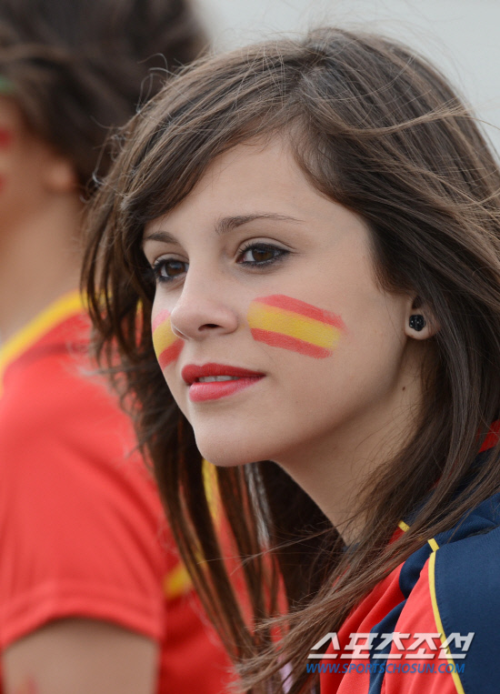 11일(한국시각) 오전 1시 폴란드 그단스크 아레나에서 열리는 유로 2012 스페인과 이탈리아의 경기를 앞두고 스페인 여성팬이 경기장으로 향하고 있다.