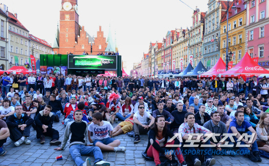 밤 9시가 넘어도 해가 지지 않는 북유럽 폴란드의 여름은 지금 축구 열기로 가득찼다. 12일(한국시각) 폴란드와 함께 유로 2012 공동개최국인 우크라이나에서 프랑스-잉글랜드, 우크라이나-스웨덴의 경기가 벌어진 가운데 폴란드 브로츠와프의 시내 중심가는 축구와 맥주를 즐기는 인파로 가득했다. 브로츠와프 시민들은 물론, 다음날 이곳에서 경기가 열리는 체코의 원정 응원단까지 몰려든 시내 광장은 그 어느때보다 활기가 넘쳤다.