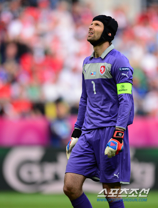 체코가 그리스를 2-1로 꺾고 조별예선경기에서 1패후 1승을 거뒀다.13일(한국시각) 유로 2012 그리스와 체코의 경기가 폴란드 브로츠와프 시립경기장에서 열렸다. 실수로 골을 허용한 체코 골키퍼 체흐가 안타까워하고 있다.
