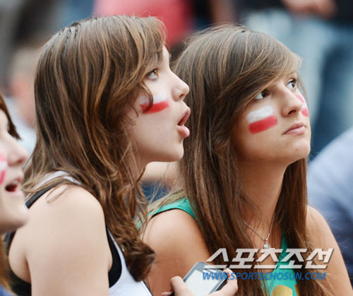[유로포토] 폴란드 소녀들 '덴마크가 질 것 같지?