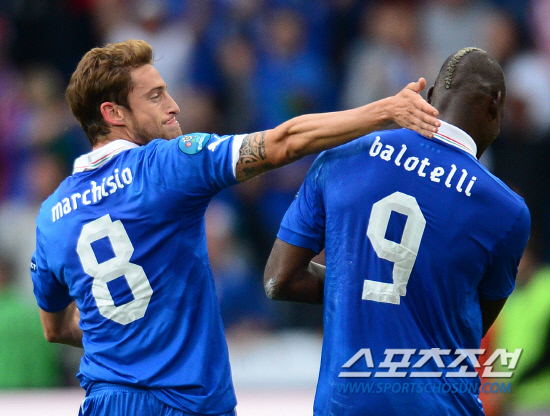 이탈리아가 천적 크로아티아와 1-1 무승부를 기록했다.15일(한국시각) 유로 2012 C조 예선 2차전 이탈리아와 크로아티아의 경기가 폴란드 포즈난 시립경기장에서 열렸다. 이탈리아는 전반 39분 피를로의 프리킥으로 선제골을 넣었지만 후반 37분 크로아티아 만주키치에게 통한의 동점골을 허용했다. 이탈리아 피를로가 선제골을 넣자 함께 기뻐한 마르키시오가 발로텔리의 뒤통수를 가볍게 치고 있다.