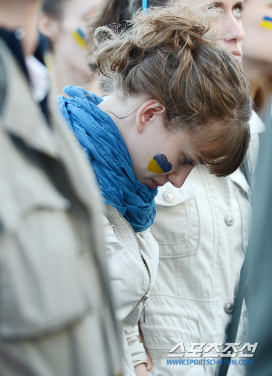 16일(한국시각) 유로2012 D조 2차전 우크라이나와 프랑스의 경기가 우크라이나 도네츠크 돈바스 아레나에서 열렸다. 공동개최국인 폴란드 바르샤바 중심가 광장에 마련된 팬존에는 우크라이나와 프랑스 국민들이 대형 전광판을 통해 중계되는 경기를 보기 위해 모였다. 우크라이나에서 바르샤바에 있는 대학교로 유학을 왔다는 한 여학생이 우크라이나의 패색이 짙어지자 절망하고 있다. 바르샤바(폴란드) =정재근 기자 cjg@sportschosun.com