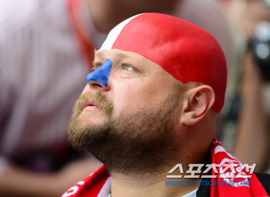 러시아와 그리스의 유로 2012 A조 조별예선 마지막 경기가 17일(한국시각) 폴란드 바르샤바 국립경기장에서 열렸다. 체코 국기를 페이스페인팅한 남성이 경기를 지켜보고 있다.