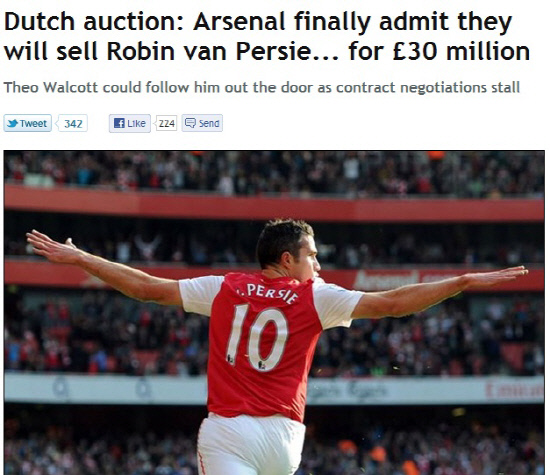 그러나 지난시즌 판 페르시가 최고의 활약을 보이며 주가가 치솟았다. 현재 맨시티와 유벤투스, 파리생제르맹, 안지 등 돈많은 구단들이 모조리 그에게 군침을 흘리고 있다. 25만 파운드의 주급을 제시하겠다고 한 구단도 있다. 그동안 판 페르시 잔류에 강한 의지를 보이던 아스널도 적극적인 투자를 예고했지만 돈싸움에서 이길 수 없다고 판단한 듯 하다.
