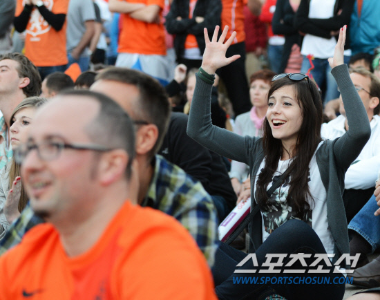 죽음의 조 4개국이 이웃나라 우크라이나에서 8강행을 향한 혈투를 벌인 가운데 폴란드 그단스크 광장에도 이들을 응원하는 팬들이 모여 열띤 응원전을 펼쳤다. 18일(한국시각) 유로 2012 B조 예선 최종전에서 포르투갈과 네덜란드, 독일과 덴마크가 맞붙었다. 폴란드의 유로 2012 개최도시인 그단스크 광장에도 이 경기를 함께 지켜보기 위해 많은 팬들이 운집했다. 네덜란드 팬들이 찬스가 무산되자 아쉬워하고 있다.