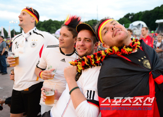 죽음의 조 4개국이 이웃나라 우크라이나에서 8강행을 향한 혈투를 벌인 가운데 폴란드 그단스크 광장에도 이들을 응원하는 팬들이 모여 열띤 응원전을 펼쳤다. 18일(한국시각) 유로 2012 B조 예선 최종전에서 포르투갈과 네덜란드, 독일과 덴마크가 맞붙었다. 폴란드의 유로 2012 개최도시인 그단스크 광장에도 이 경기를 함께 지켜보기 위해 많은 팬들이 운집했다. 독일을 응원하는 팬들이 여유있는 모습으로 경기를 지켜보고 있다.