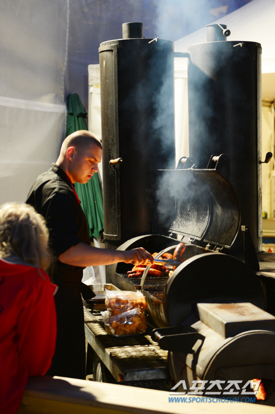 죽음의 조 4개국이 이웃나라 우크라이나에서 8강행을 향한 혈투를 벌인 가운데 폴란드 그단스크 광장에도 이들을 응원하는 팬들이 모여 열띤 응원전을 펼쳤다. 18일(한국시각) 유로 2012 B조 예선 최종전에서 포르투갈과 네덜란드, 독일과 덴마크가 맞붙었다. 폴란드의 유로 2012 개최도시인 그단스크 광장에도 이 경기를 함께 지켜보기 위해 많은 팬들이 운집했다. 광장에 마련된 푸드코트에서 먹음직스런 소시지가 불에 구워지며 사람들을 유혹하고 있다.