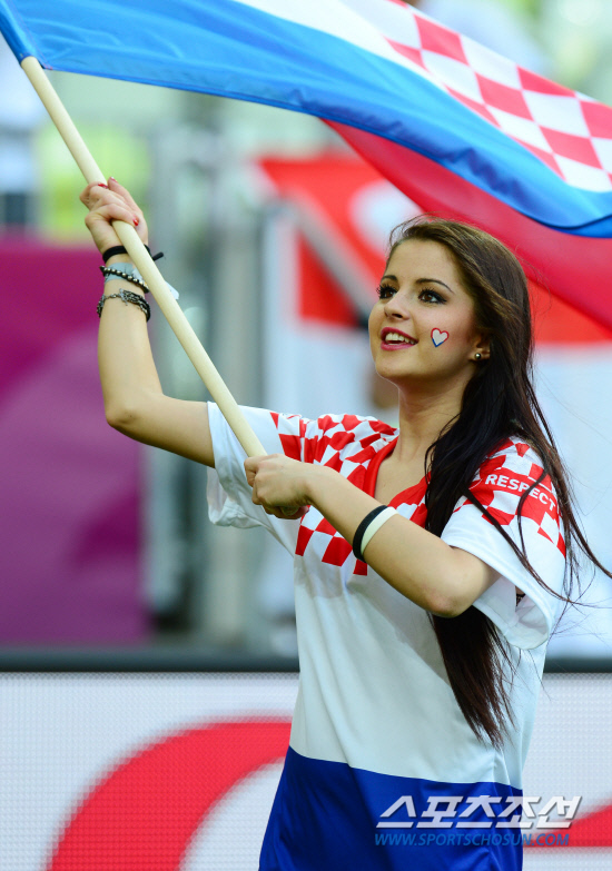스페인과 크로아티아의 유로 2012 C조 예선 마지막 경기가 19일(한국시각) 폴란드 그단스크 아레나에서 열린 가운데 경기전 한 폴란드 소녀가 크로아티아 국기를 들고 팬들의 응원을 유도하고 있다.