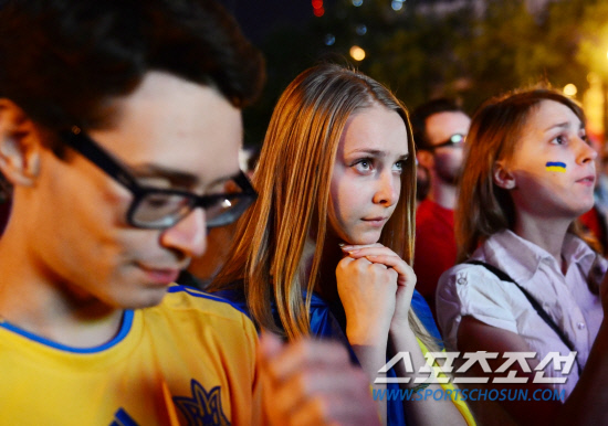 개최국 우크라이나가 유로 2012 8강 진출에 실패했다. 20일(한국시각) 우크라이나 돈바스 아레나에서 열린 D조 예선 마지막 경기에서 우크라이나는 잉글랜드에 0-1로 패하며 조 4위로 8강 진출이 좌절됐다. 같은 시각 폴란드 바르샤바 팬존에서는 폴란드로 유학을 온 우크라이나 학생들이 길거리 응원을 했다. 0-1로 경기가 끝나자 학생들이 절망하고 있다.