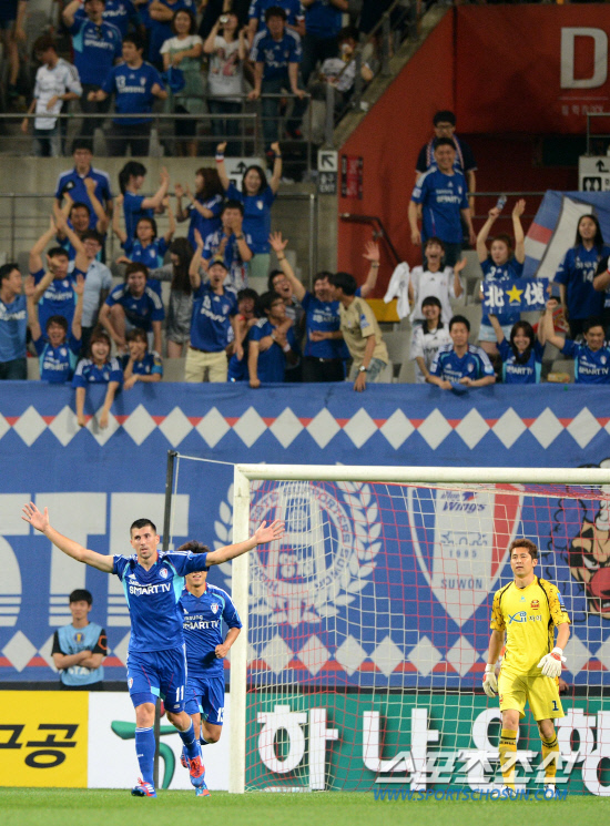 재치 넘치는 골이었다. 수원의 전담 프리키커는 수비수 보스나였다. 그러나 예상을 깼다. 아크 서클에서 스테보가 때린 오른발 슛은 활처럼 휘어 오른쪽 골대에 꽂혔다. 스테보는 수원 서포터스들 쪽으로 달려가 '뽀빠이' 세리머니를 펼쳤다. 오른쪽 팔을 들어 이두박근에 강한 힘을 줬다. 수원이 서울보다 세다는 표현을 세리머니로 승화시켰다.