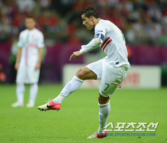 포르투갈이 호날두의 결승골로 체코를 1-0으로 물리치고 4강에 진출했다. 22일(한국시각) 폴란드 바르샤바 국립경기장에서 포르투갈과 체코의 유로 2012 8강전이 열렸다. 호날두가 프리킥을 시도하고 있다.