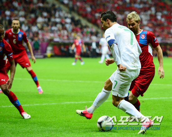 포르투갈이 호날두의 결승골로 체코를 1-0으로 물리치고 4강에 진출했다. 22일(한국시각) 폴란드 바르샤바 국립경기장에서 포르투갈과 체코의 유로 2012 8강전이 열렸다. 포르투갈 호날두가 체코 문전에서 돌파를 시도하고 있다.