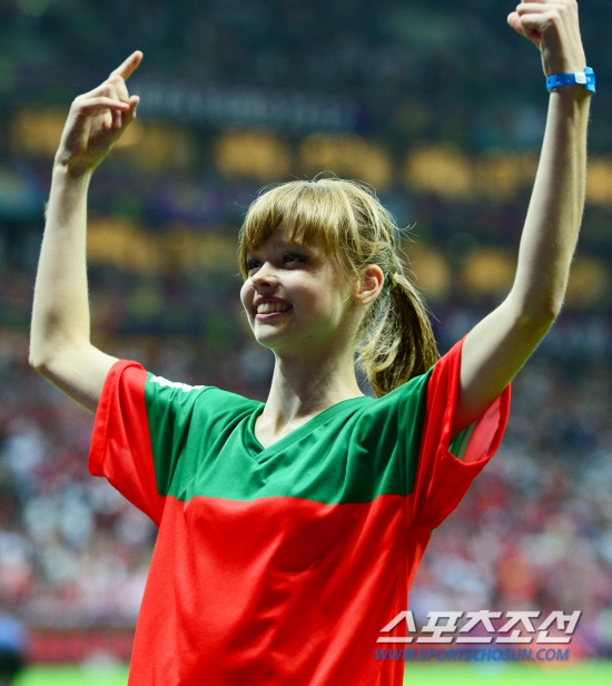 포르투갈이 호날두의 결승골로 체코를 1-0으로 물리치고 4강에 진출했다. 22일(한국시각) 폴란드 바르샤바 국립경기장에서 포르투갈과 체코의 유로 2012 8강전이 열렸다. 하프타임 때 포르투갈을 응원하는 폴란드 소녀가 그라운드에서 관중의 응원을 유도하고 있다.