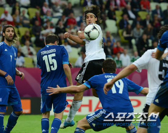 독일이 그리스를 4-2로 물리치고 4강에 진출했다. 23일(한국시각) 폴란드 그단스크 아레나에서 유로 2012 독일과 그리스의 8강전이 열렸다. 독일 케디라가 헤딩슛을 시도하고 있다.