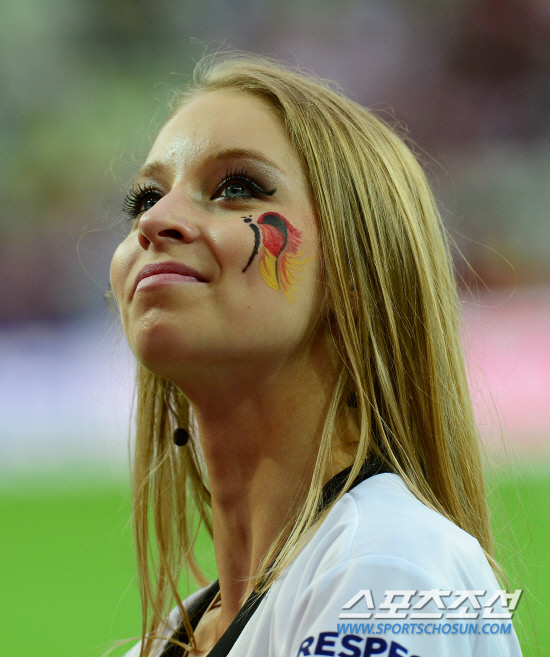 독일과 그리스가 4강을 향한 길목에서 맞붙었다. 23일(한국시각) 폴란드 그단스크 아레나에서 유로 2012 독일과 그리스의 8강전이 열렸다. 깃발을 들고 그라운드에서 독일을 응원하는 한 소녀가 관중석을 바라보고 있다.
