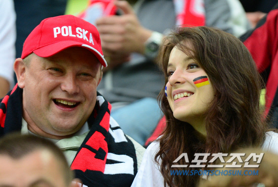 독일과 그리스가 4강을 향한 길목에서 맞붙었다. 23일(한국시각) 폴란드 그단스크 아레나에서 유로 2012 독일과 그리스의 8강전이 열렸다. 아빠와 함께 경기장을 찾은 한 소녀가 밝게 웃고 있다.