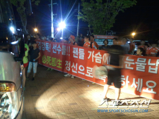 경기 직후 서포터스들은 인사를 건네러 관중석 쪽으로 다가오는 선수단을 향해 '김감독! 선수들! 팬들 가슴에 피눈물 납니다! 필사즉생(必死卽生) 정신으로 축구하세요!'라는 현수막을 걸었다. 이후 경기장 중앙 출입구로 몰려와 선수단 버스를 가로막고 김 감독에게 향후 경기 운영 방안과 성적 등을 약속하라고 요구했다. 선수들과 함께 버스에 올랐던 김 감독은 "선수들이 노력하고 있으나 좋은 결과를 내지 못해 죄송스럽게 생각한다. 나중에 이야기 하자"고 말했다. 이에 팬들은 "시간이 없으니 이 자리에서 이야기를 해달라. 올해 강등이 되는 것인가, 안되는 것인가"라고 격앙된 목소리를 냈다. 하지만 김 감독이 "절대로 그런 일(강등)은 없을 것이다. 최선을 다해 그런 일이 벌어지지 않도록 노력하겠다"고 약속하자 김 감독과 선수단에 박수와 응원구호를 보내며 해산했다. 김남선 나르샤 회장은 "선수들의 정신력이 팬들의 눈높이에 비해 현저히 낮은 듯한 모습을 보여 이런 자리를 마련했다. 결코 김 감독을 흔들기 위해 모인게 아니다"라면서 선수단의 선전을 촉구했다.