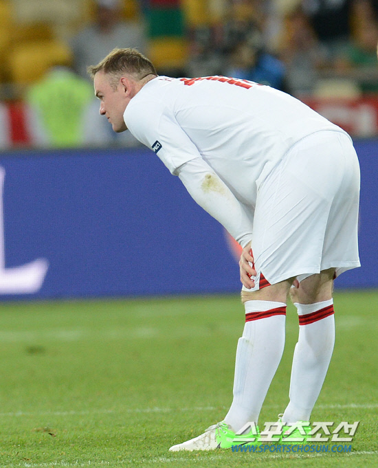 이탈리아가 승부차기로 잉글랜드를 제압하고 4강에 진출했다. 25일(한국시각) 우크라이나 키예프 올림픽스타디움에서 유로 2012 8강전 이탈리아와 잉글랜드의 경기가 열렸다. 전후반과 연장전까지 120분동안 0-0으로 승부를 가리지 못한 두 팀은 승부차기에서 4-2로 승리했다. 승부차기에서 패한 잉글랜드 루니가 허탈해하고 있다.