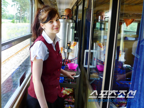 힘들지 않느냐는 질문에 모니카는 "노!"라고 대답했다. 지금 하고 있는 일이 너무나 즐겁다고 말했다. 정말 그래 보였다. 무거운 카트를 끌고 객차와 객차 사이를 오가면서도 모니카는 항상 싱글벙글 웃고 있었기 때문이다. 모니카의 일은 그것뿐만이 아니다. 긴 시간 동안 열차를 타는 승객들은 식당칸에서 끼니를 해결한다. 그래서 맨 앞에 있는 식당칸은 항상 붐빈다. 2시간에 한 번 객차를 돌며 음식을 제공한 후 나머지 시간은 식당칸에서 일한다. 주문을 받고 음식을 가져다주는 일, 설거지와 식탁청소도 모니카의 몫이다.
