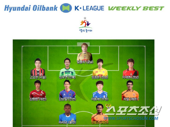 포항전에서 1골-1도움을 올린 울산의 마라냥은 산토스와 함께 베스트 공격수로 선정됐다. '위클리 베스트 11' 미드필드 자리는 자일(제주) 이용래(수원) 김남일(인천) 김형범(대전)이 각각 차지했다. 이재명(경남) 임종은(성남) 심우연(전북) 고요한(서울)은 18라운드 최고 수비수로 이름을 올렸다. K-리그 최초 200경기 무실점 기록을 달성은 김병지(경남)는 최고 수문장으로 뽑혔다.