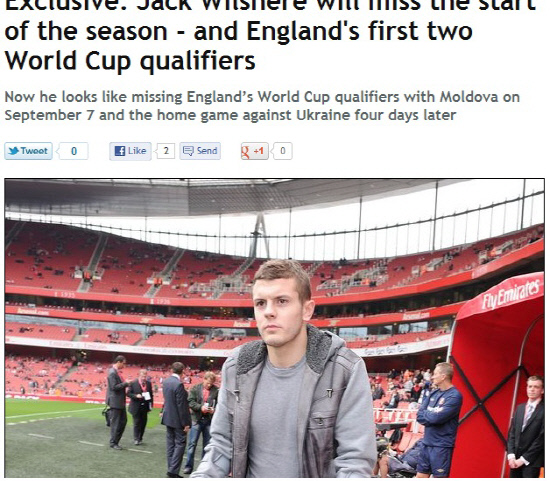 윌셔의 늦은 회복에 아쉬워 하고 있는 것은 아스널 뿐이 아니다. 잉글랜드 대표팀도 2014년 브라질 월드컵 유럽예선 몰도바와 우크라이나와의 첫 2경기에 윌셔를 기용하지 못한다. 창의성 부족으로 유로2012에서 고저냈던 잉글랜드 대표팀에겐 아쉬운 소식이다.