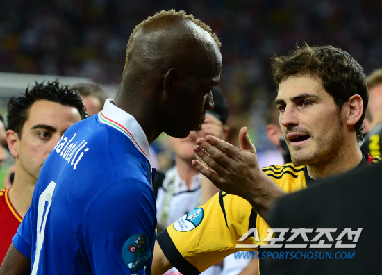 스페인이 이탈리아를 4-0으로 꺾고 앙리들로네컵을 들어올렸다. 2일(한국시각) 우크라이나 키예프 올림픽스타디움에서 열린 유로 2012 결승전에서 스페인은 이탈리아를 로 꺾고 대망의 우승컵을 차지했다. 시상식에서 스페인 카시야스가 이탈리아 발로텔리를 위로하고 있다.