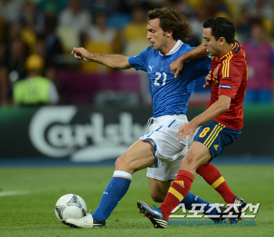 스페인이 이탈리아를 4-0으로 꺾고 앙리들로네컵을 들어올렸다. 2일(한국시각) 우크라이나 키예프 올림픽스타디움에서 열린 유로 2012 결승전에서 스페인은 이탈리아를 로 꺾고 대망의 우승컵을 차지했다. 스페인 차비가 이탈리아 피를로의 공을 뺏기 위해 달려들고 있다.