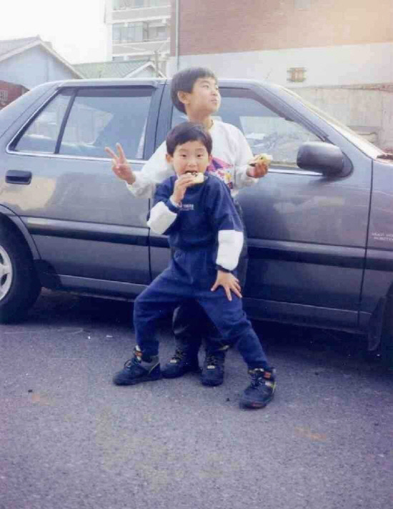 1993년 인천 집 앞 동네에서 놀던 중 한껏 포즈를 취한 형 하대성(뒤)과 동생 하성민.